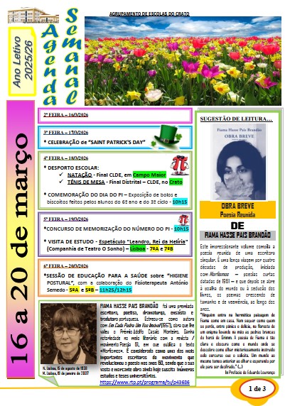 Agenda semanal (de 22 a 26 de setembro) (clique na imagem seguinte)
