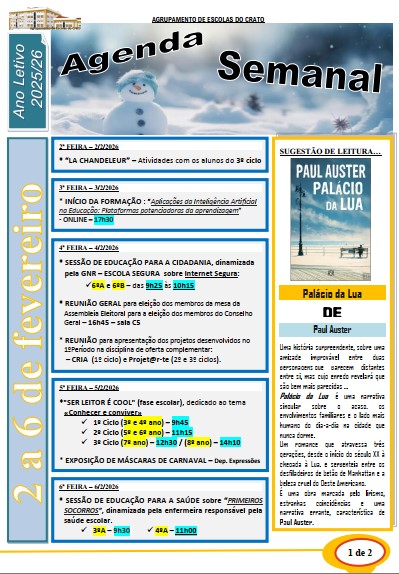 Agenda semanal (de 02 a 06 de fevereiro) (clique na imagem seguinte)